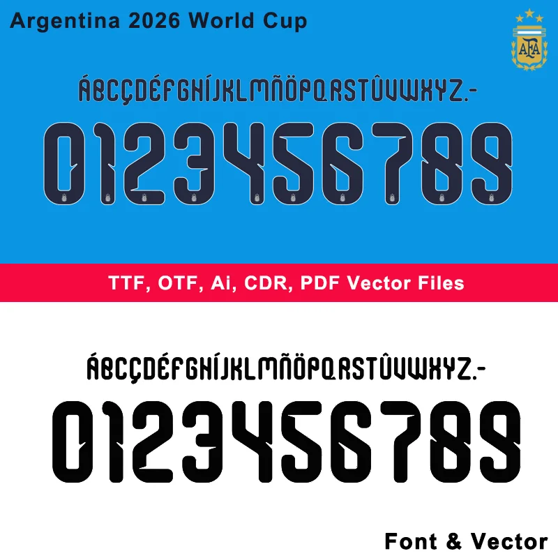Download the official Argentina 2026 World Cup Font, featuring TTF, OTF, AI, CDR, and PDF vector files. Perfect for designs, logos, and merchandise.